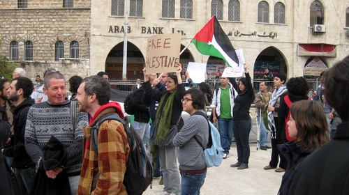 Erster Gang heute: Vom Jaffator durch die Altstadt zum Damaskustor und dann zur Klagemauer. Die frommen Männer haben nichts dagegen, dass sich die Gojim unter sie mischen; sie beachten die "Gäste" (die Gaffer? Und ich einer von ihnen) gar nicht. Vor dem Damaskustor dann ein überraschender Kontrapunkt zum frommen Tun: eine kleine Demonstration "Free Palestina". Waren nicht mehr als fünzig junge Leute. Eine fröhliche Demo mit Trommeln, Liedern und Sprechchören. |