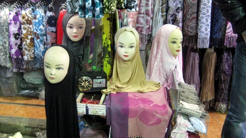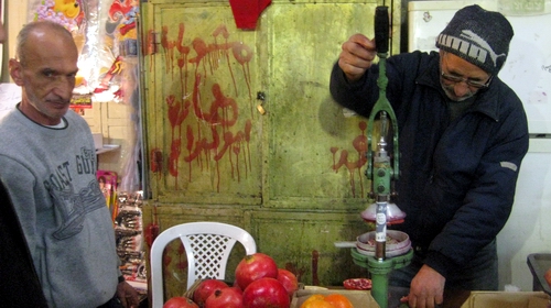 | Danach wieder in das orientalische Treiben im Basar. Es gibt alles für den Alltag, Speise, Trank, Kleidung (modische Halstücher und mehr, Granatapfel frisch gepresst. | |