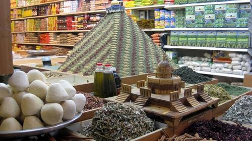 Was dem Kölner der Dom sind dem Jerusalemer Araber die Moscheen auf dem Tempelberg. Hier im Gewürzladen: |
