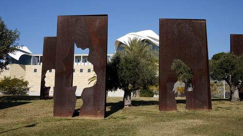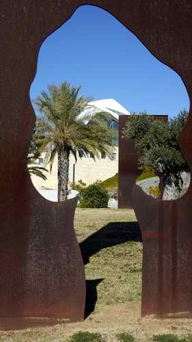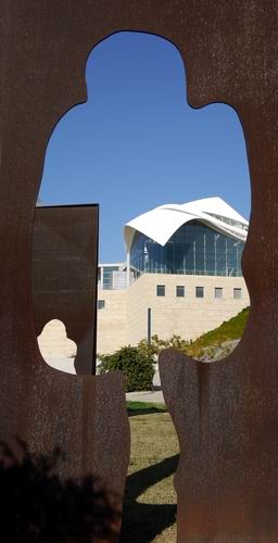 | Unterhalb des M;useums liegt der Anita Hirsch Familiy Gardem mit Skulpturen 'Trees in Negative' des Tel Aviver Künstlers Menashe Kadishman. |