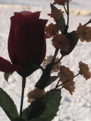 keine Lamas, sondern asiatisch-mongolische. Anrührend die kleine Pflanze mitten in der Wüste, rundherum kein Grün, aber eine unscheinbare Blume. |