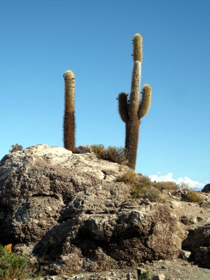 Mitten im Salz die Insel Incahuasa oder (für die Touristen) Isla del pescador, Fischerinsel, weil sie angeblich wie ein Fisch