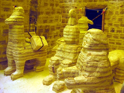 Das Salz ist wirklich ein gutes Baumaterial. Am Ufer des Solar das erste Hotel, das erbaut wurde. Was zum Bauen gut ist, ergibt auch schöne Skulpturen. Allerdings ist das Material nicht widerstandsfähig, wenn... Deshalb der überhaupt nicht diskrete Hinweis: "Hier nicht pinkeln" |