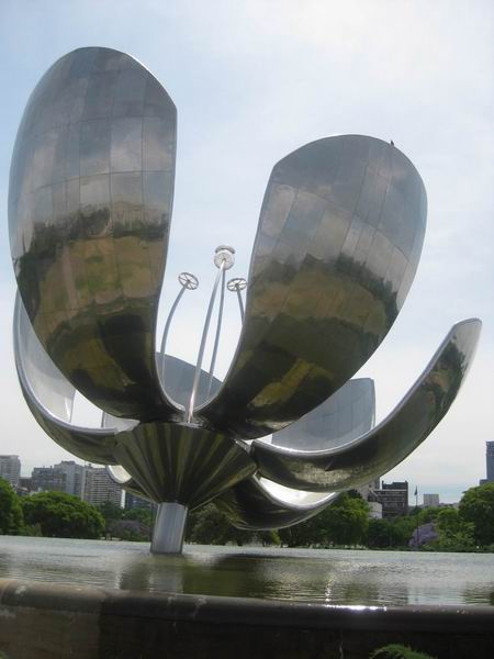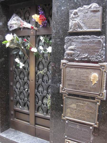 Es gibt viele Arten sich durch das Leben zu schlagen, wenn einer oder eine nicht zu den mit Reichtum Gesegneten gehört: Man verkauft auf der Straße irgend etwas mehr oder weniger Sinnvolles oder auch sich selbst, man singt, macht Musik, verteilt Zettelchen... Man kann auch Hunde ausführen; Frauchen pflegt sich indessen die Zehennägel... Dem alten Französischlehrer springt jedesmal das Herz im Leib, wenn ihm die Tricolore begegnet. Hier an der französichen Botschaft (genau hinsehen!). Mitten in der oft gesichtslosen Stadtarchitektur dann einmal eine Jugendstilperle. Auf dem Weg zum Recoleto-Friedhof vorbei an der schönen Kirche... und dann die Gräber der Reichen und Mächtigen, beginnend mit dem von Evita Peron (oder ist es Eva, bitte korrigieren!). Gewaltig, was die Leute sich einfallen lassen, um sich im Gedächtnis zu halten. Und das strebt nach oben: von der das Kind säugenden Mutter bis zum himmelsnahen Feldherrn oder die marmorne Dame, die hinter sich die Türe schließt (oder öffent sie sich die Pforte. Jedenfalls hat sie die Hand an der Klinke. Am Ende gab es noch Kunst: eine riesige Blume im Park und dann das Museum der Schönen Küste. Im unteren Geschoss fiel mir der Goya ins Auge. Im ersten Stock gab es lateinamerikanische Kunst der letzten fünfzig Jahre. Hat mich beeindruckt..., kann's aber nicht vorführen. |