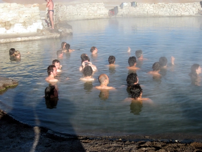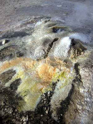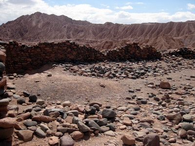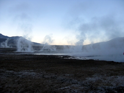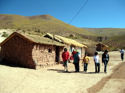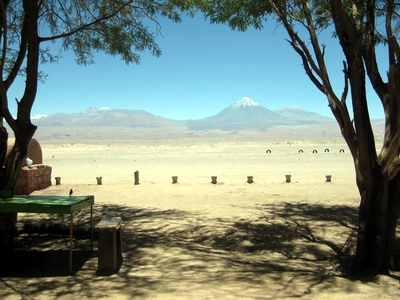 erwartet und auf einem dritten Stock in der Schlafkammer untergebracht. Nach einem ersten Ruhetag Aufstehen um vier Uhr morgens um die Geysire von Tatio zu besuchen. Aufstieg auf 4300 m und Abstieg auf -8°. Mag sein, dass sie in Island eindrucksvoller sind. Weil ich noch nie in Island war, waren sie eindrucksvoll. Ist aber auch eine von diesen Tourismusautomaten. Da werden morgens Hunderte ausgeschüttet und wieder abgefahren. Auf der Rückfahrt Same procedure in einem kleinen Andendorf. Dort erwarteten uns Lama am Spieß und Lamaempanadas. Schmeckt gut. Danach wieder aus der kargen Andensteppe (Puna) in die absolute Wüste. Am Abend noch in das kleine Museum hier. Ein Kleinod über die Entstehung einer bescheidenen Kultur. Die Inkas haben sie sich einverleibt und dann die Spanier. |