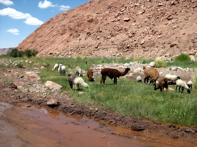 dem zwöften Jahrhundert, die Spanier haben sie niedergemacht), Catarpe, verlassenes Dorf, eine Herde aus Lamas,